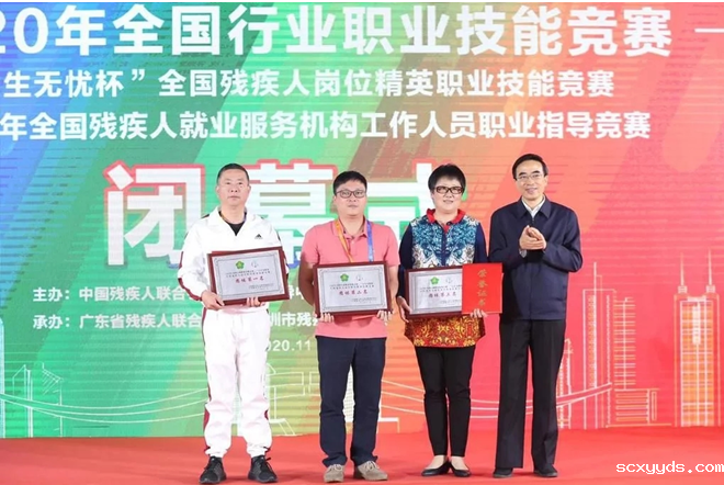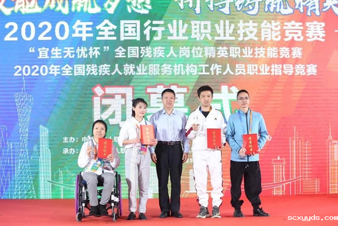 2020年11月23日至27日,2020年全国行业职业技能竞赛——“宜生无忧杯”全国残疾人岗位精英职业技能竞赛系列活动在广东省深圳市坪山区格兰云天会展中心成功举办。中国残联副主席、副理事长程凯,中国残联就业服务指导中心主任赖伟、广东省残联理事长张永安、深圳市残联理事长侯伊莎等领导同志出席闭幕式并为获奖选手和获得优胜的代表队颁奖。